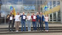 Maxim Rasch (17, v.l.), Johann Hoffmann (15) und Benedikt Baum (17) vom Hans-Thoma-Gymnasium in Lörrach haben am 9. März das 12. German Young…